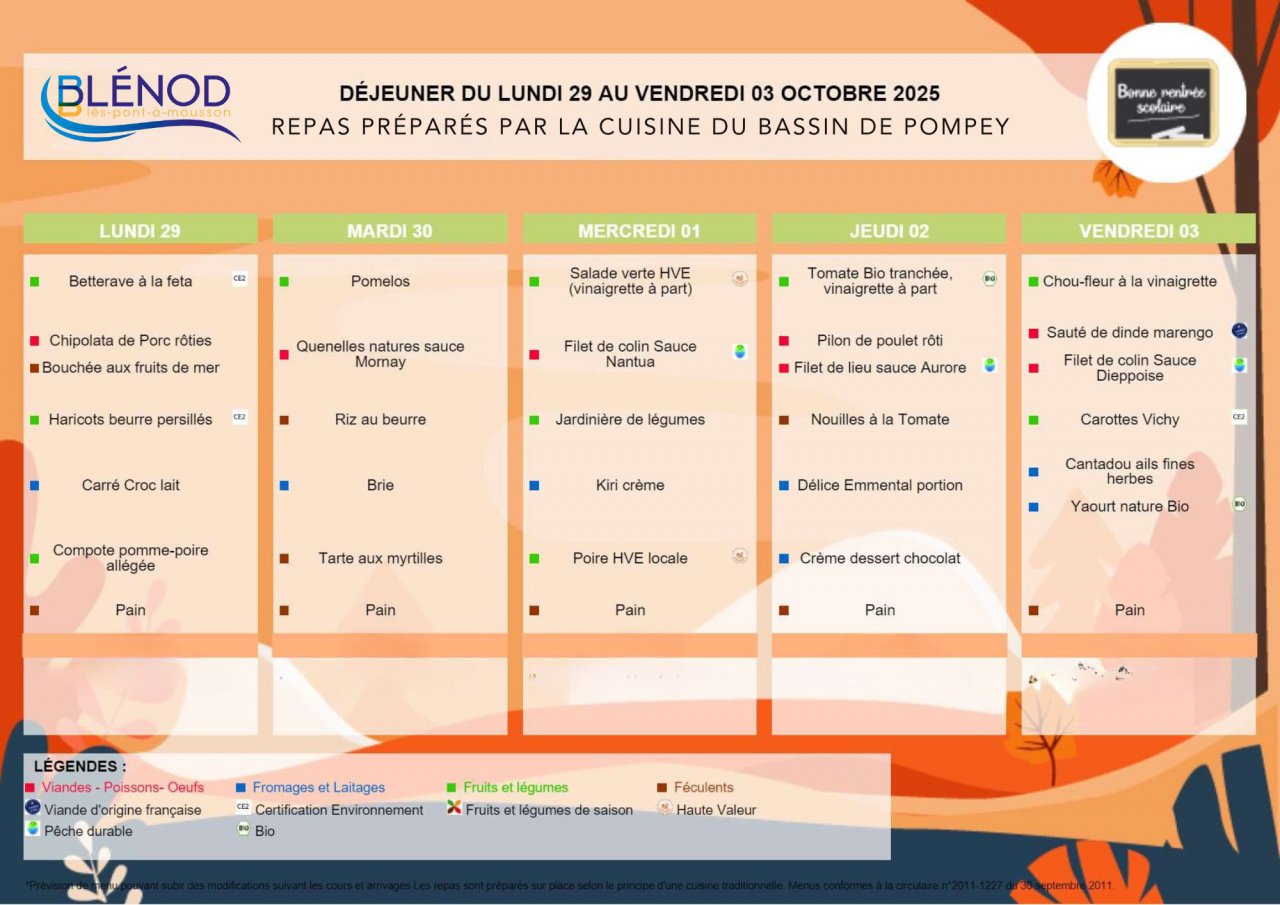 Sur réservation au plus tard à 12h le mardi de la semaine précédente pour toute la semaine suivante (changement possible uniquement sur le plat) par tél : 03 83 80 43 25