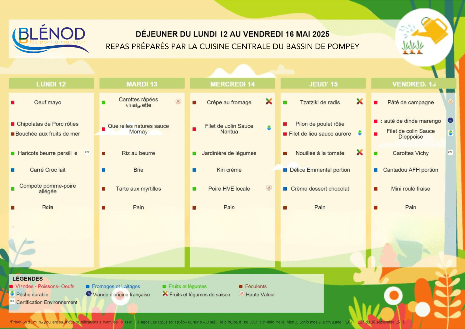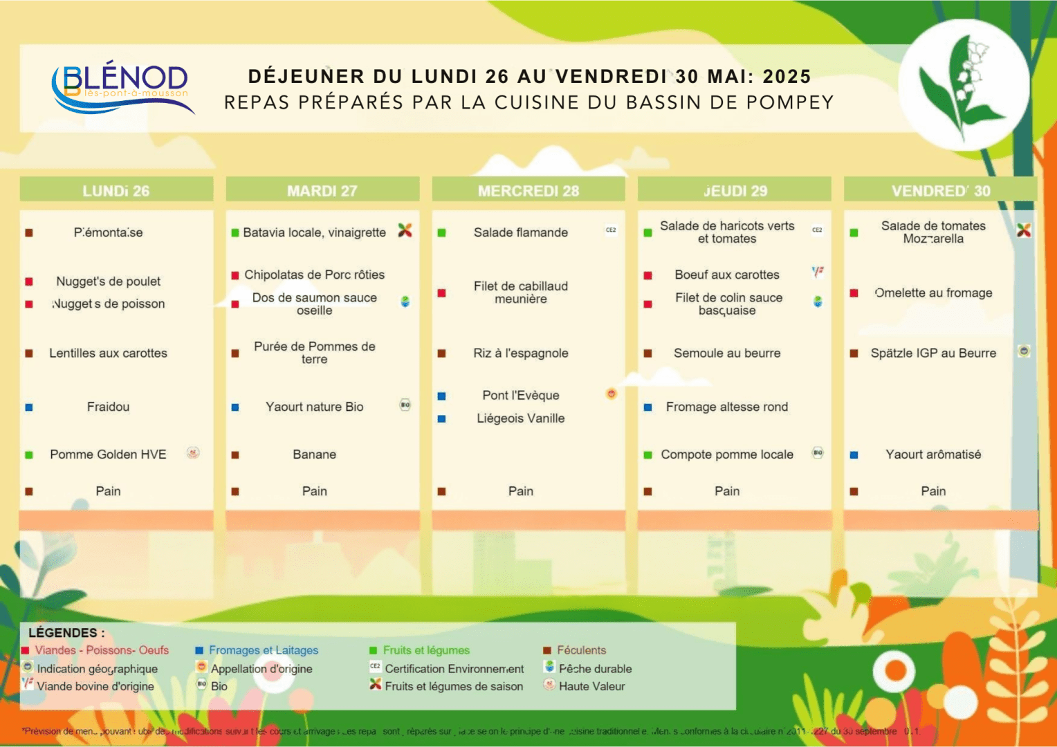 Sur réservation au plus tard à 12h le mardi de la semaine précédente pour toute la semaine suivante (changement possible uniquement sur le plat) par tél : 03 83 80 43 25