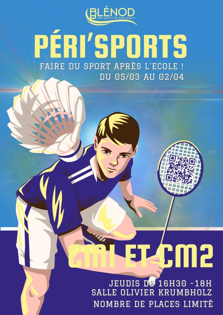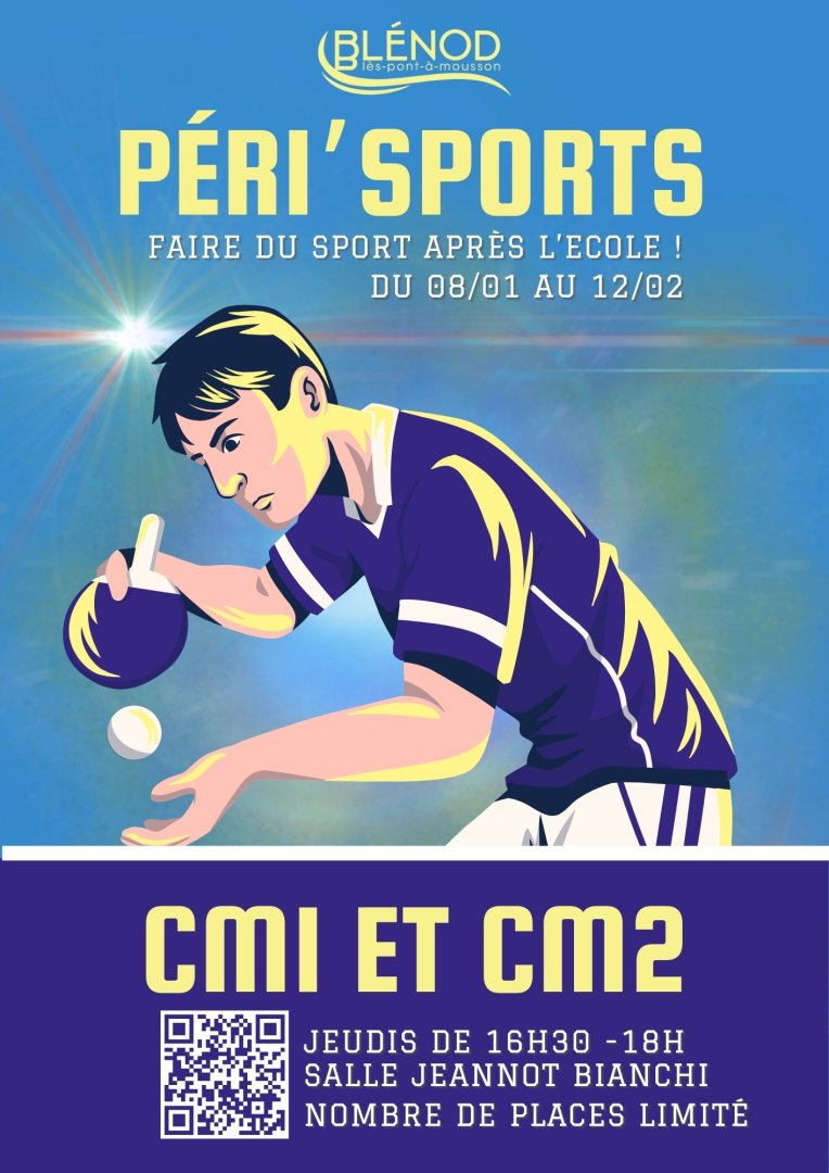 Pour la première session Périsports, vous trouverez le dossier à compléter et à déposer en mairie ou à renvoyer par mail via portail-famille@blenod.fr