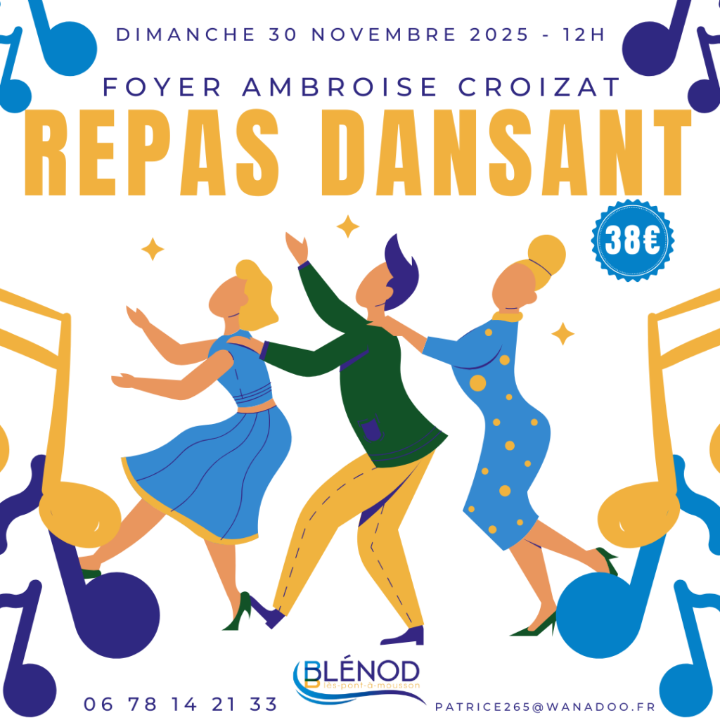 L'association du foyer Ambroise Croizat vous convie à leur repas dansant le dimanche 30 novembre 2025 à 12h !
